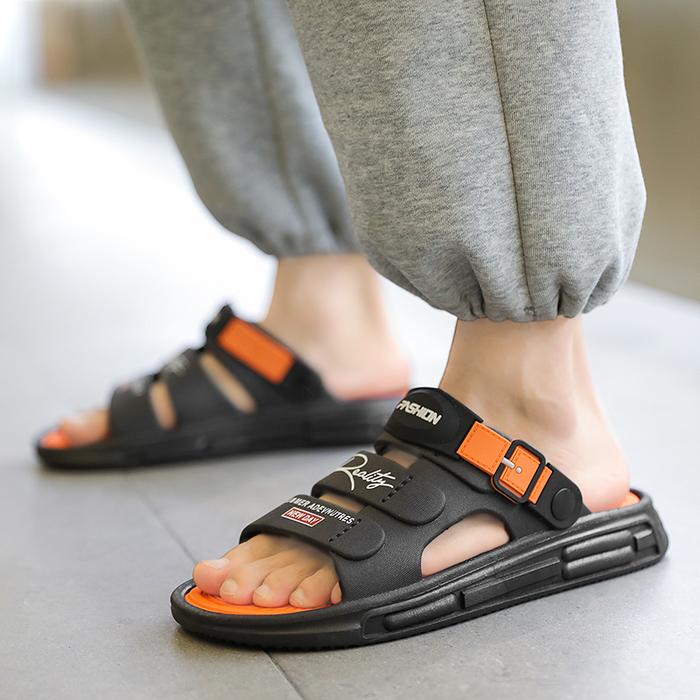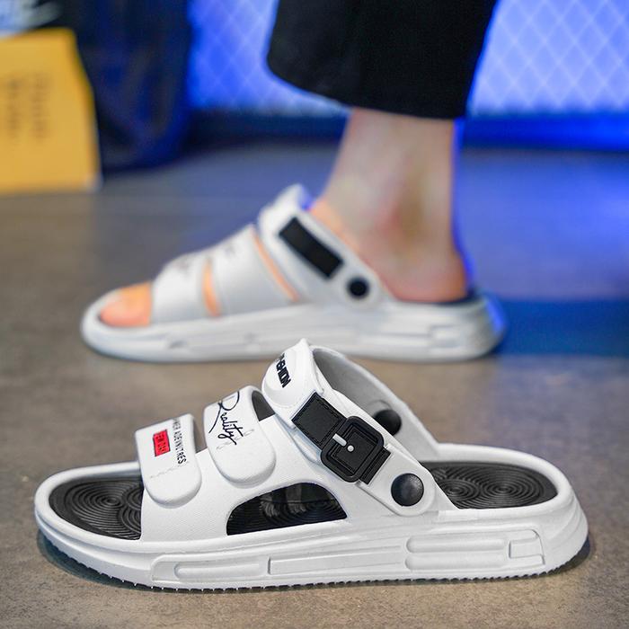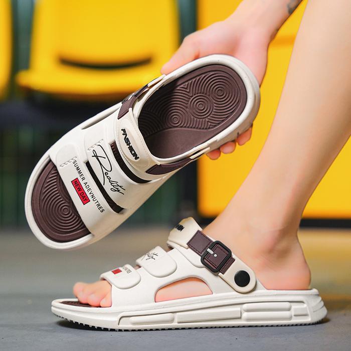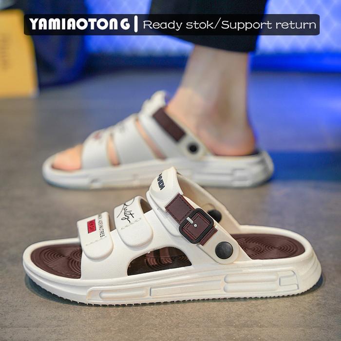 YAMIAOTONG SANDAL AIDEN SLIP ON PRIA ELASTIS TERBARU EMPUKTEBAL ANTI LICIN FULL KARET - BEIGE&BROWN, EUR38/39 =24.5CM
