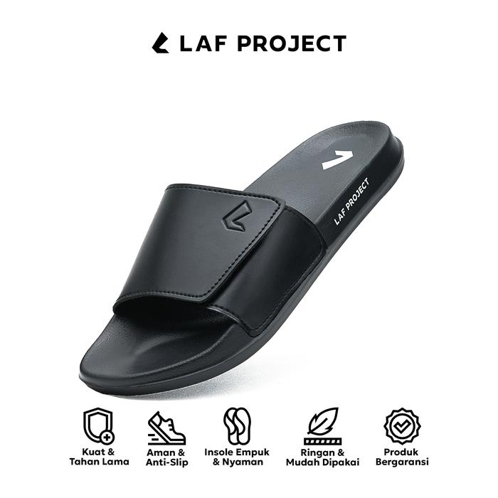 SANDAL PRIA SELOP KARET SLIDE SENDAL SLIP ON ANTI LICIN RINGAN HITAM PAPUCI LAF PROJECT SHOES - 39