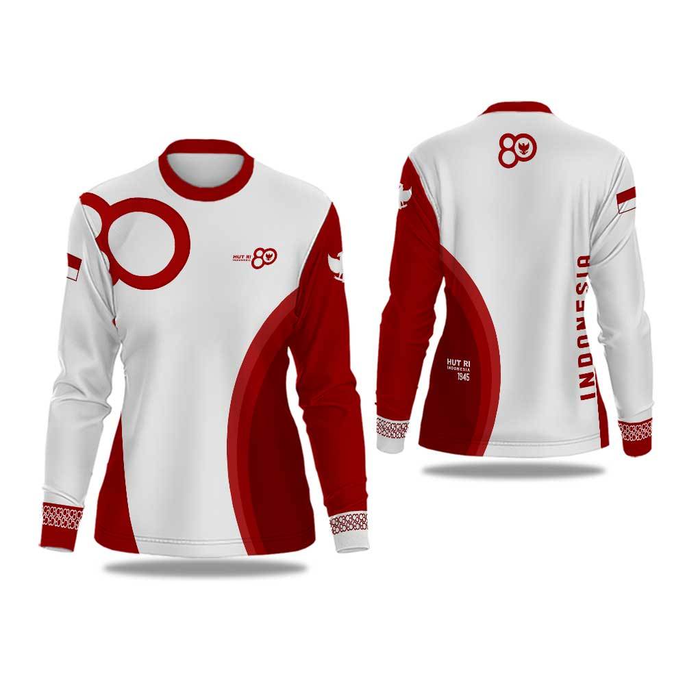 Kaos Agustus Wanita / Kaos Baju Jersey 17 Agustus 2025 Lengan Panjang Fullprint