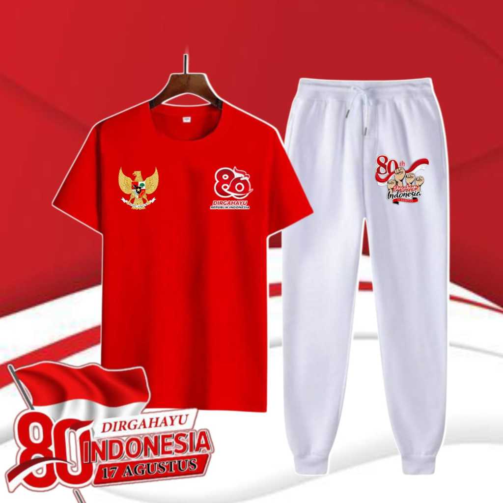 Setelan Kaos Merah Putih Garuda 17 AGUSTUS 2025 80HT Dirgahayu Republik Indonesia