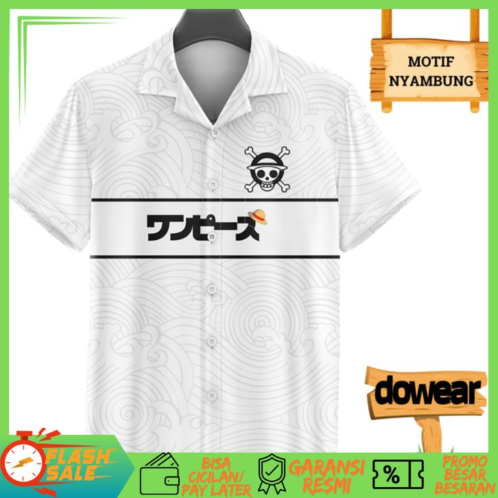 Dowear Baju Shirt Kemeja Cewe Cowo Motif Print Lengan Pendek Motif Printing 697 ONE PIECE PUTIH