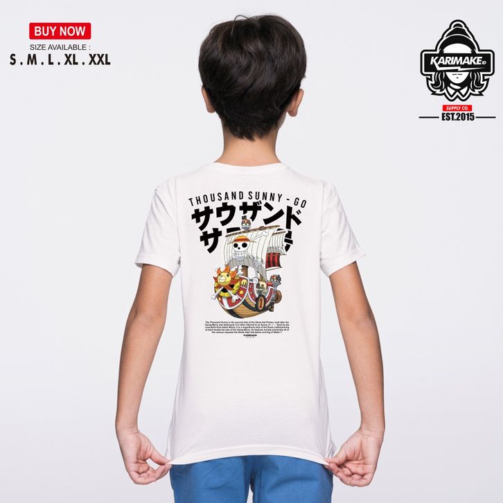 KRMK Kaos T Shirt Baju Distro Anak Unisex Gambar Anime ONE PIECE THOUSAND SUNNY GO