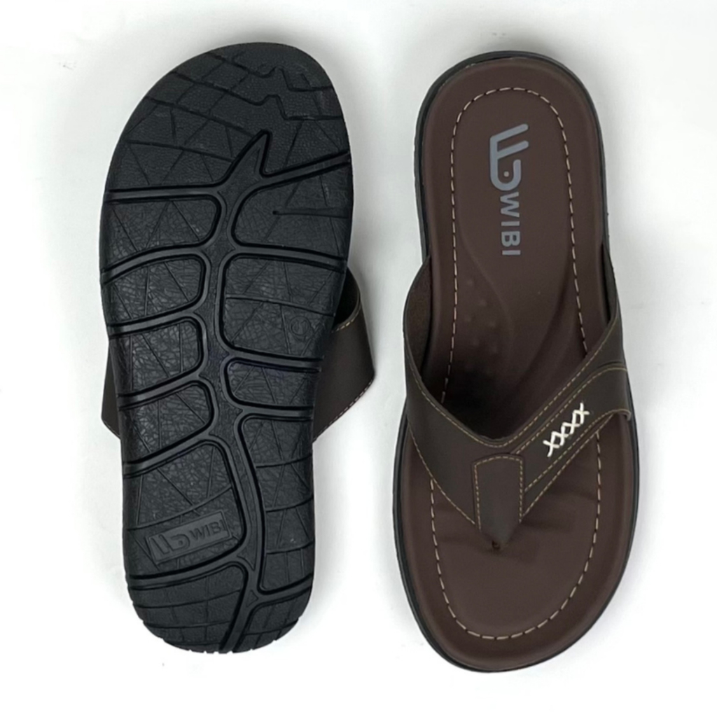 [Mall] WIBI S01-01 SANDAL JEPIT KULIT PRIA DEWASA COKELAT TUA SIZE 39 - 43