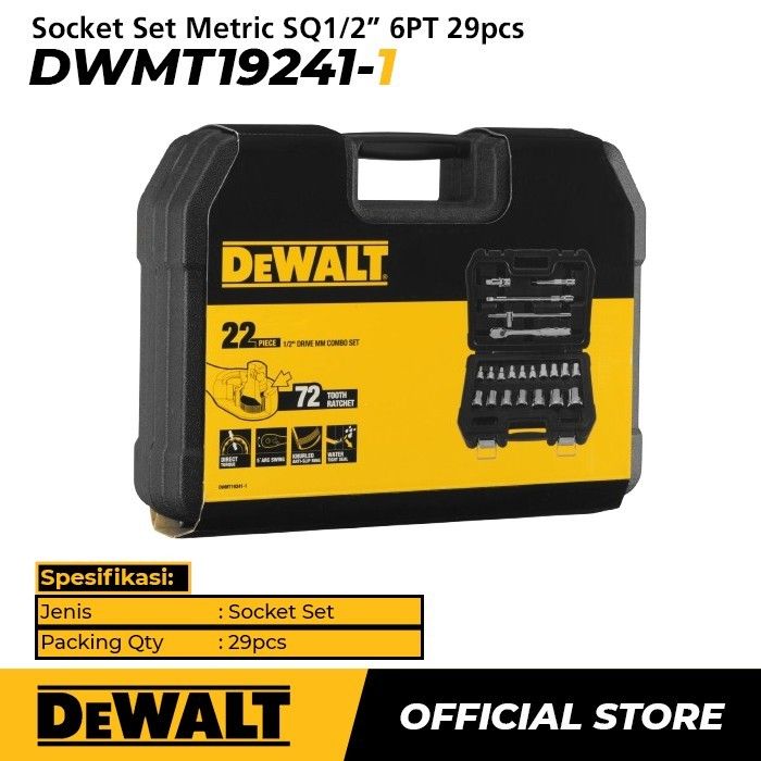 Dewalt Socket Set Metric SQ 1/2" 6PT 22pcs DWMT19241-1