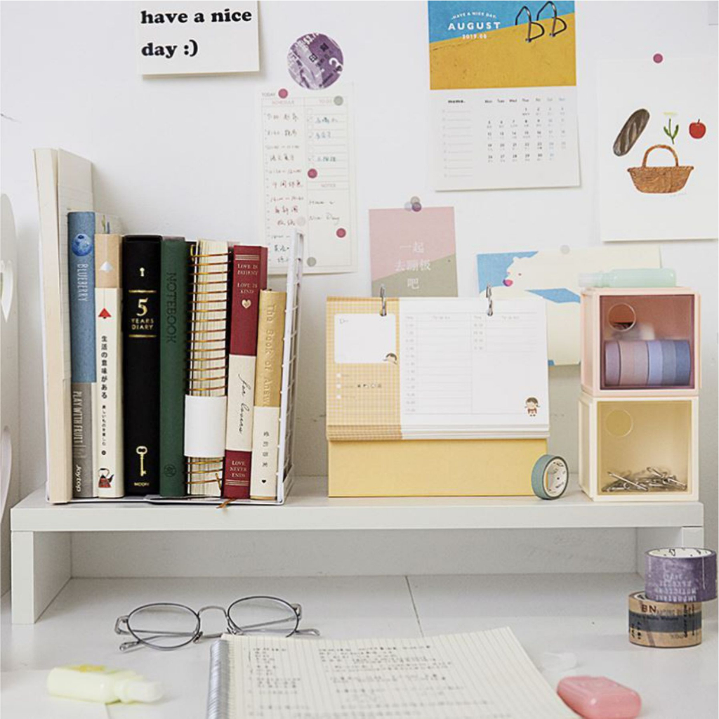 Mega_1688 Korean Aesthetic White Study Table Wood Rack Desk Organizer / Meja ala Korea Minimali 1047