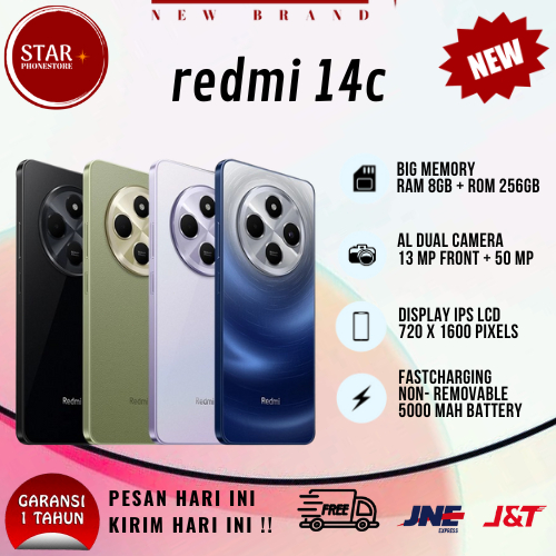 [PROMO] SMARTPHONE REDMI 14C RAM 8/256GB SIGNAL 4G BATERAI 5000 mAH} NEW BRAND FULLSET GARANSI 1 TAHUN