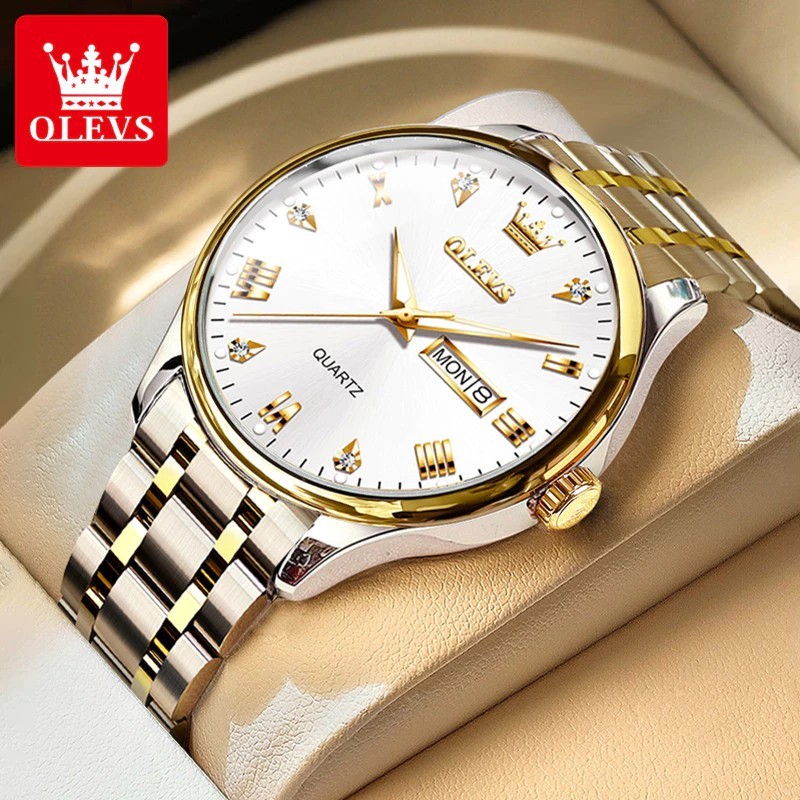 [Mall] OLEVS Jam Tangan Pria Original 5563 Anti Air Luxury ANALOG Stainless Steel Watch for Men