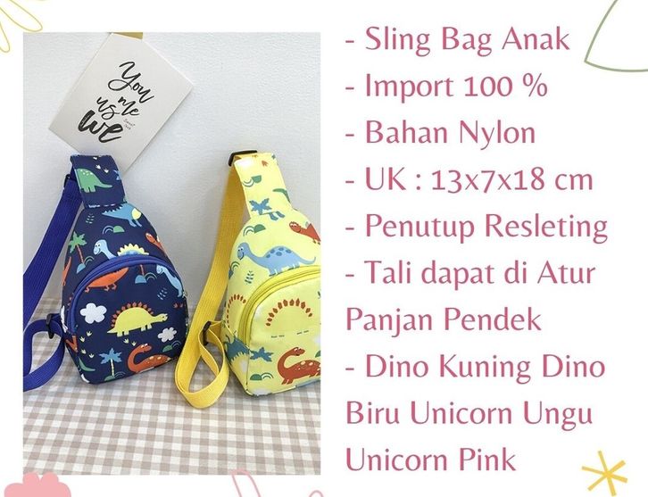 Tas Anak Lucu Motif Unicorn Dino - Tas Sling Bag Mini Lucu Import Terbaru Unisex - Tas Anak perempuan import