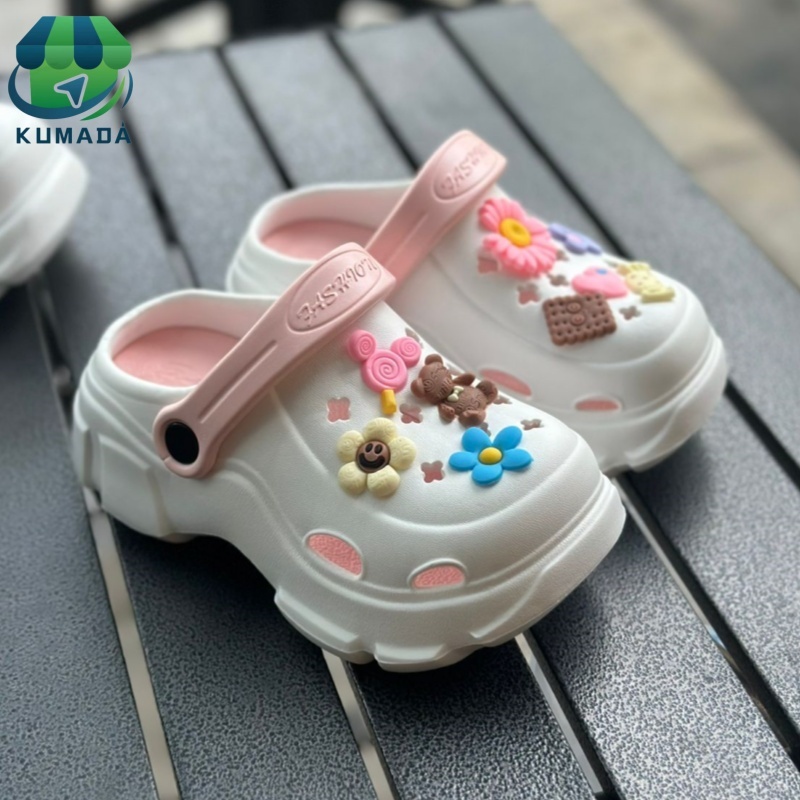 Sandal anak perempuan 2-12 tahun koleksi baru sepatu lubang-lubang gaya Korea dengan aksesori lucu