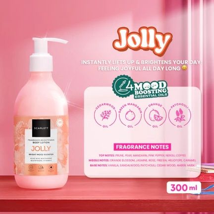 SCARLETT Fragrance Brightening Bright Booster Body Lotion Bright Mood Booster 300ml +4 Essential Oils 3X Brightening Pow