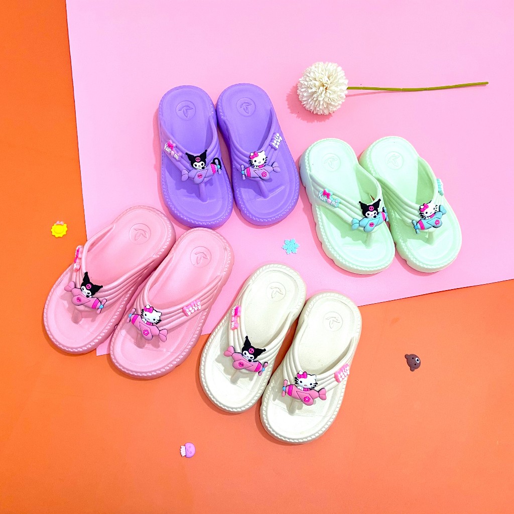 Sendal Anak Perempuan Kuromi Hello Kitty Slip on Jepit Uk 24-35 usia 2 tahun sd 10 tahun - B7901-1