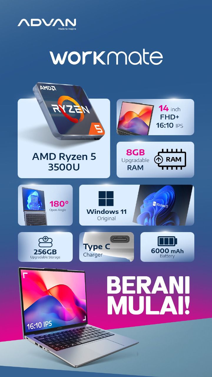 Laptop Advan Workmate 8GB 256GB Notebook Ryzen 5 Windows 11 New Original Garansi Resmi
