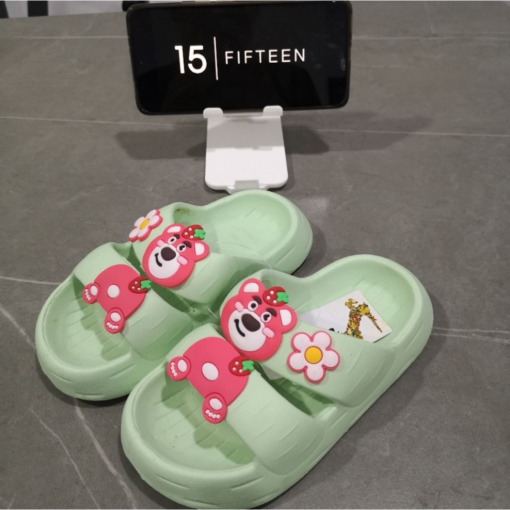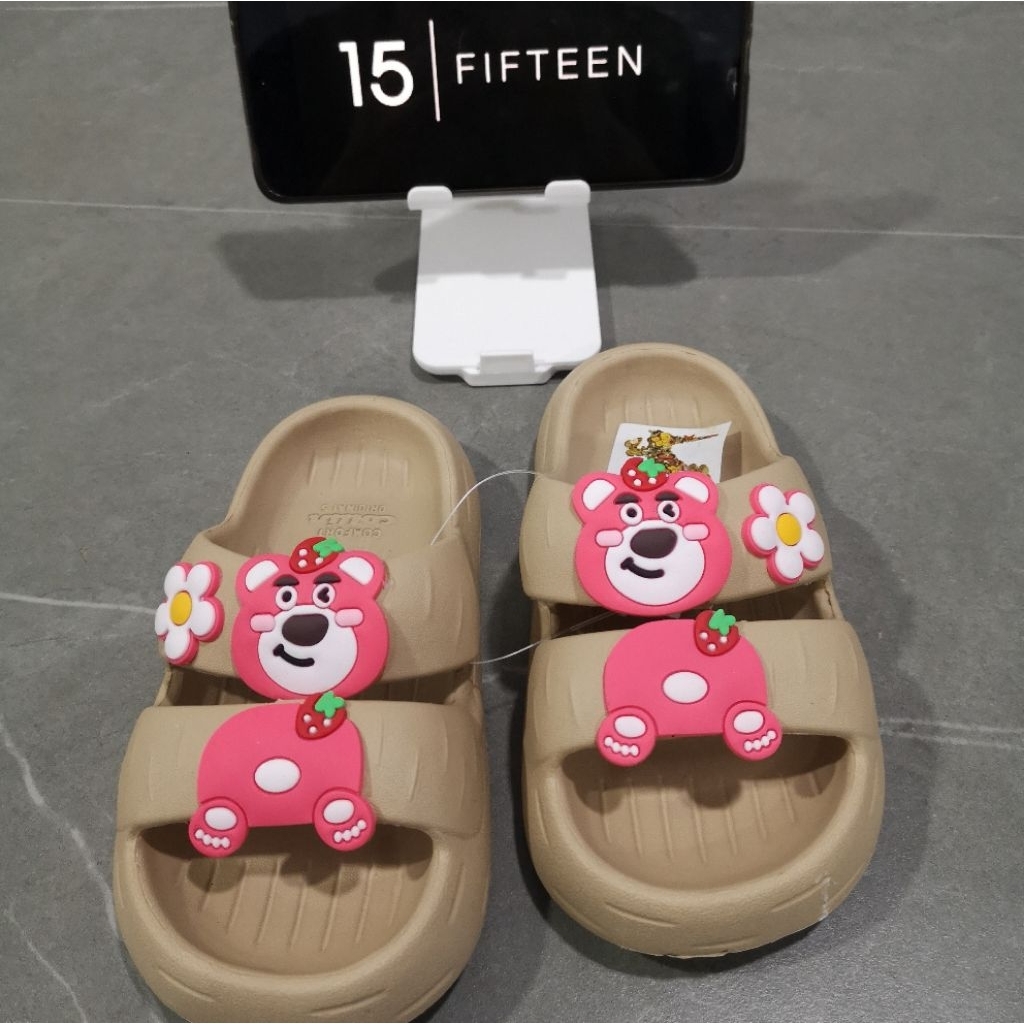 Sandal Anak Perempuan Bear Bunga Sendal Cewek Kekinian Lucu Ringan Nyaman Karet Pink Hitam 6137-T1