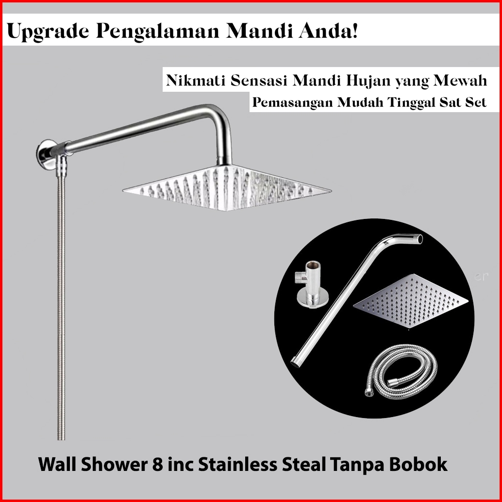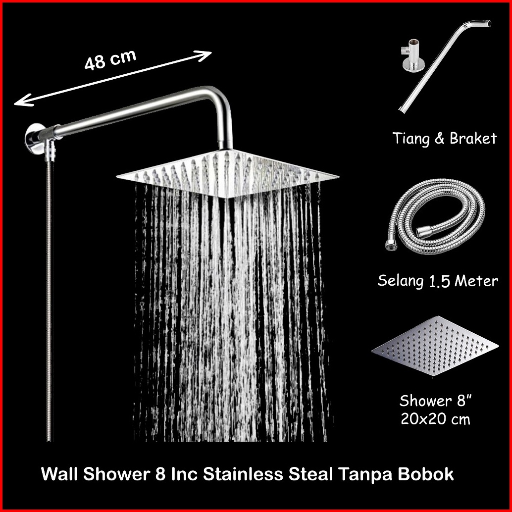 1 Set Shower Tanpa Bobok Tembok Wall Mounted Shower Arm Stainless Steel Wall Shower Kotak 8 Inc
