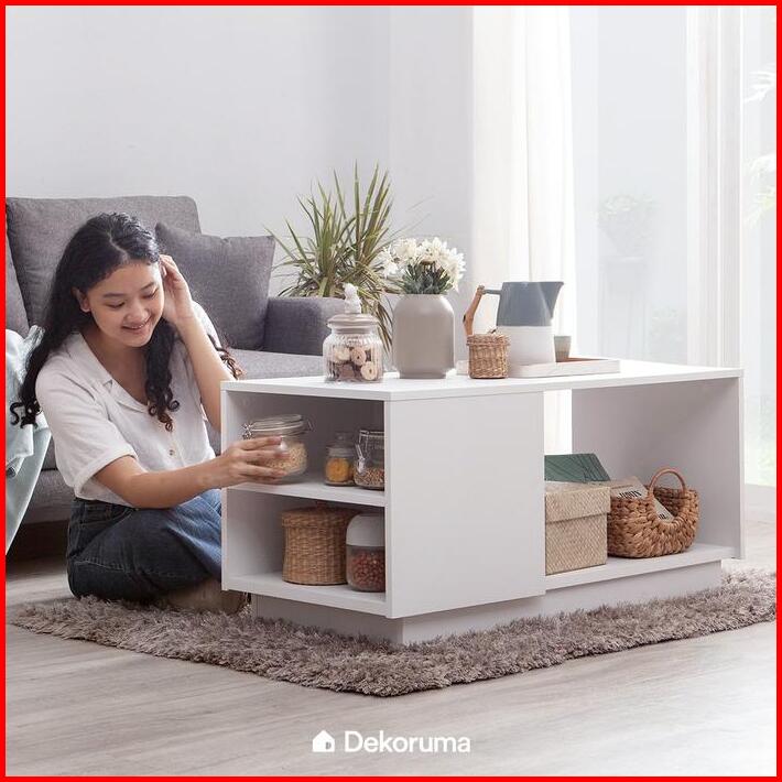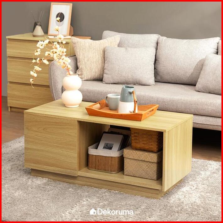 Dekoruma Moku Meja Tamu Minimalis Dengan Rak Susun Dari Kayu Olahan