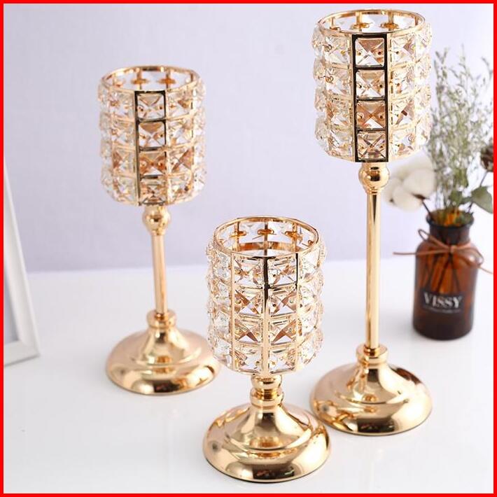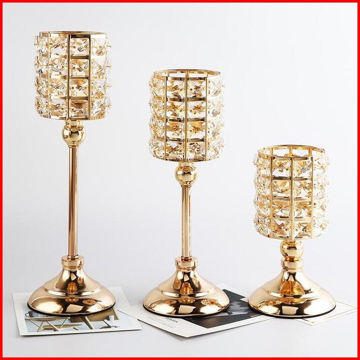 Ready Stock3 Tempat Lilin Kristal Tinggi Persegi 32cm Tempat Lilin Kristal Kualitas Tinggi Dekorasi Rumah Mewah Hiasan M