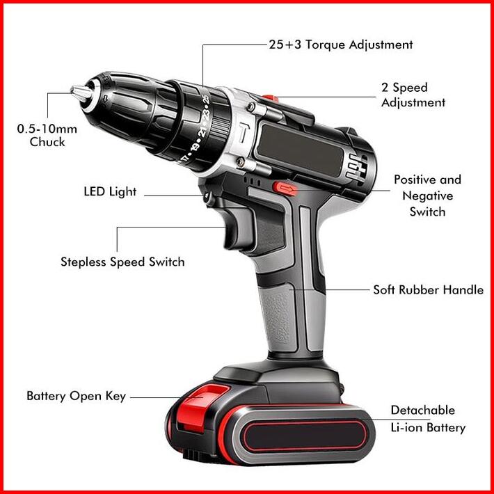 Mesin Bor Impact Drill Bor Baterai Bor Tanpa Kabel Bor Listrik 198vf Bor Listrik Set Bor Tangan Listrik Bor Baterai