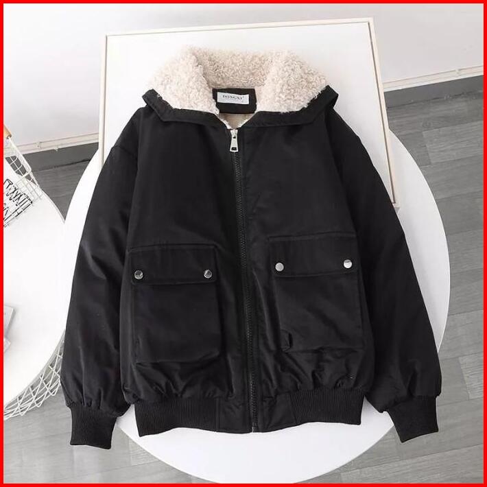 Jaket Wanita Musim Dingin Hoodiie Bulu Tebal Inner Bulu Korean Winter