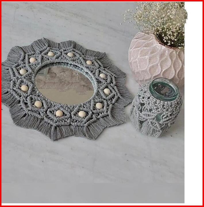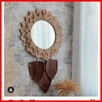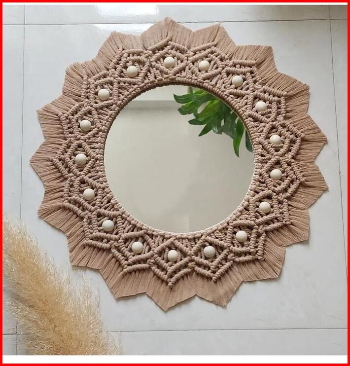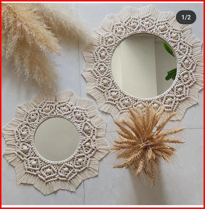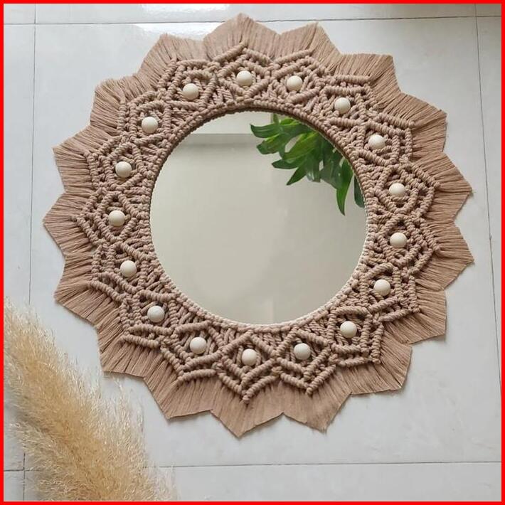 Cermin Macrame Ring Bulat Hiasan Dinding Ruang Tamu Kaca