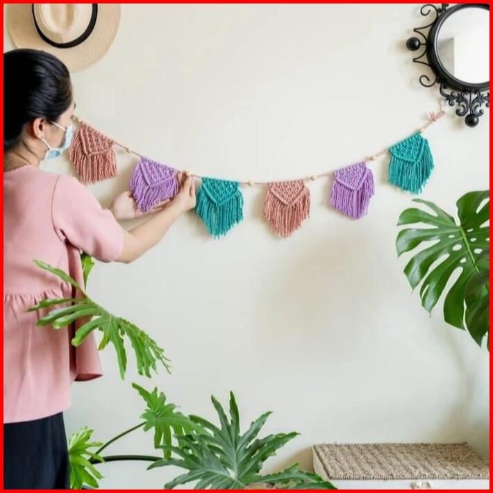 Macrame Leaf-hiasan Dinding Daun150x100 Cm Gantungan Panjang