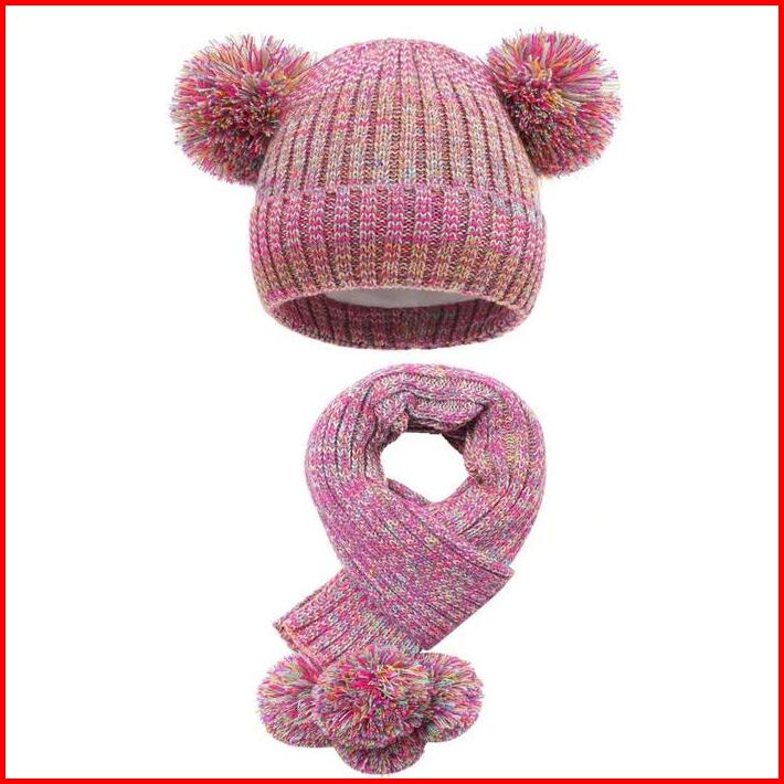 Kids Set Hat Scarf Winter Topi Dan Syal Anak-anak Set Musim Dingin Rajut Fashion Motif