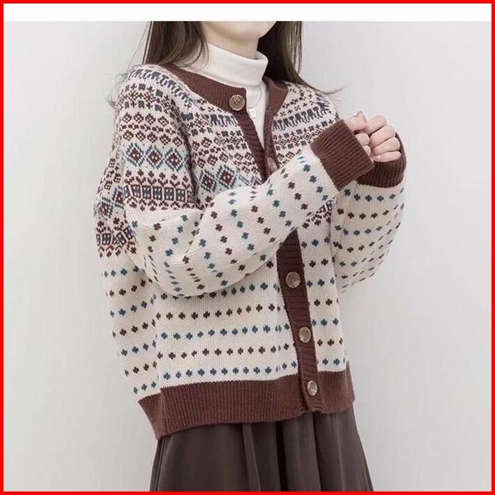 Sweater Cardigan Rajut Wanita Atasan Baju Korea Knit Tebal Motif Nyaman Knitwear Outer Panjang