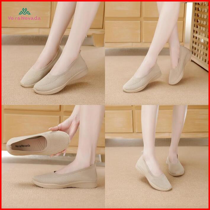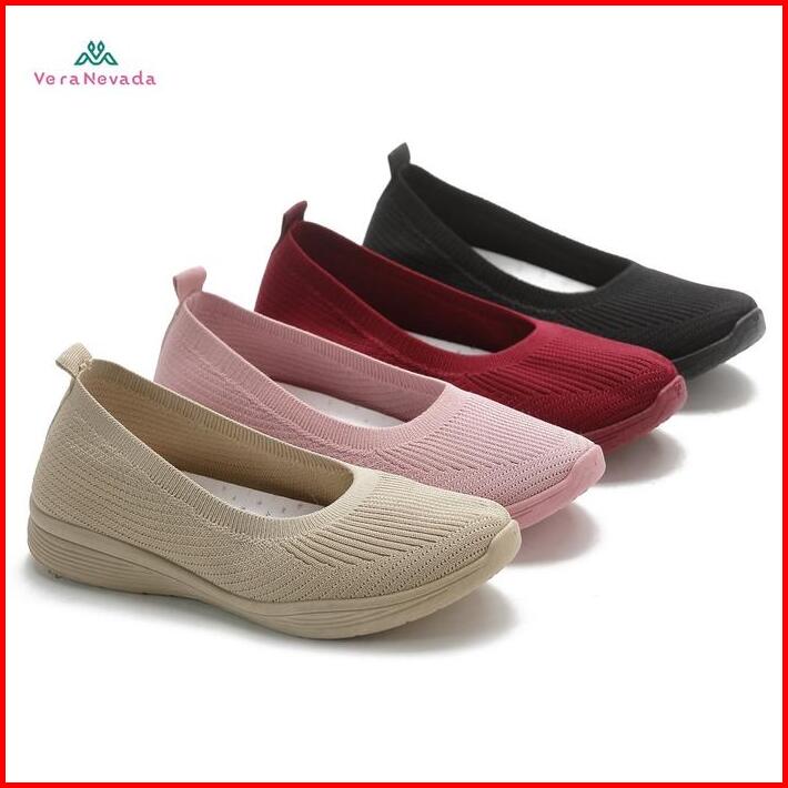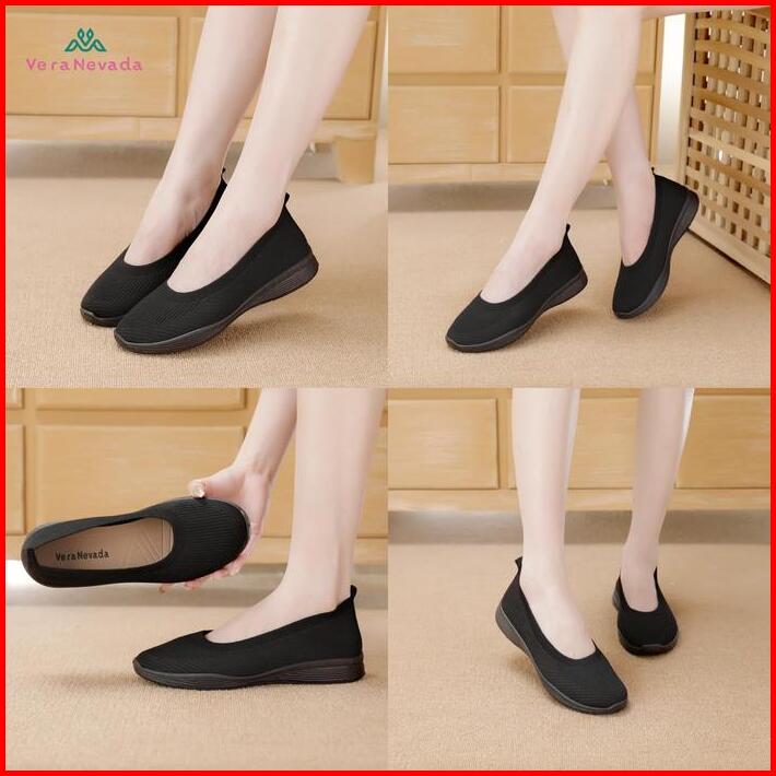 Vn Sepatu Erta Flat Slip On Wanita Shoes Black Pink A02