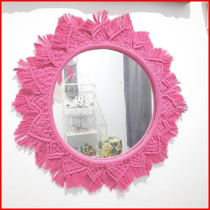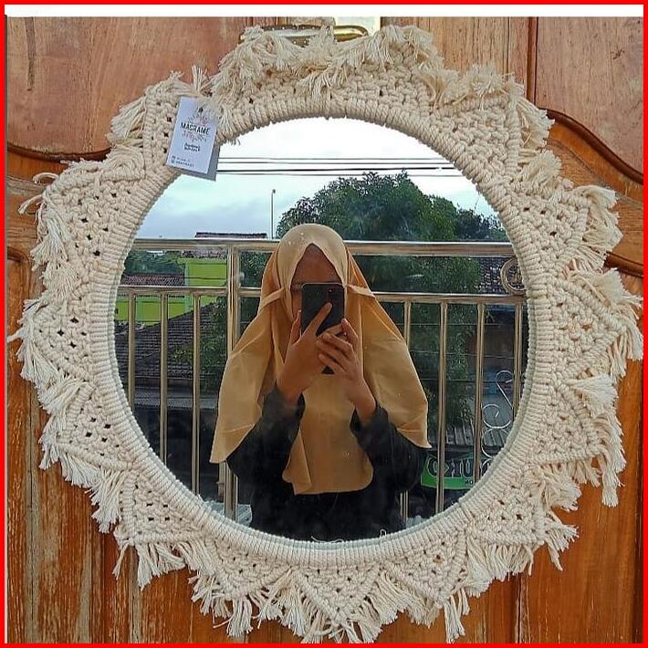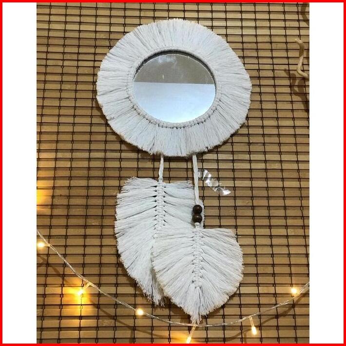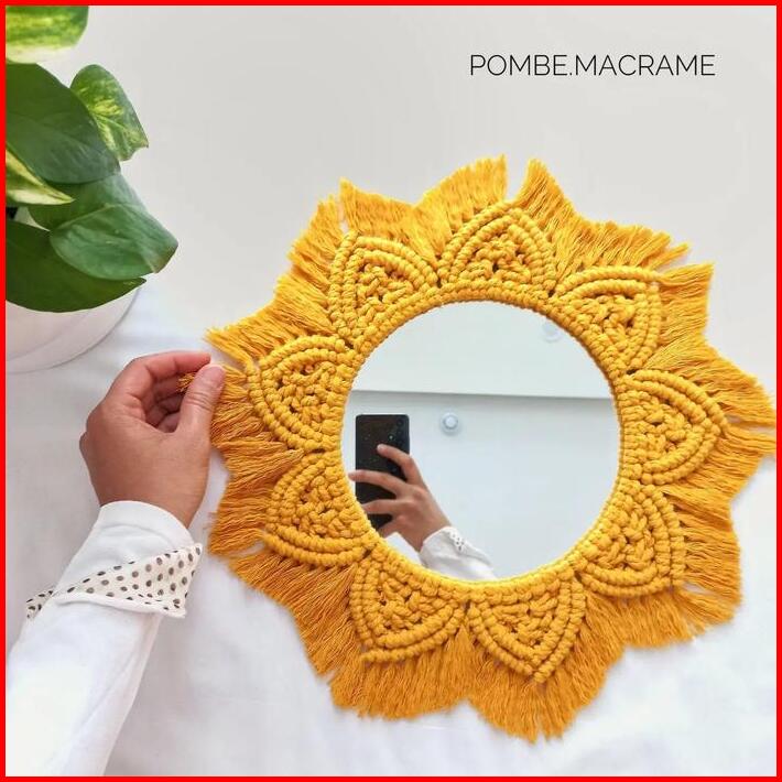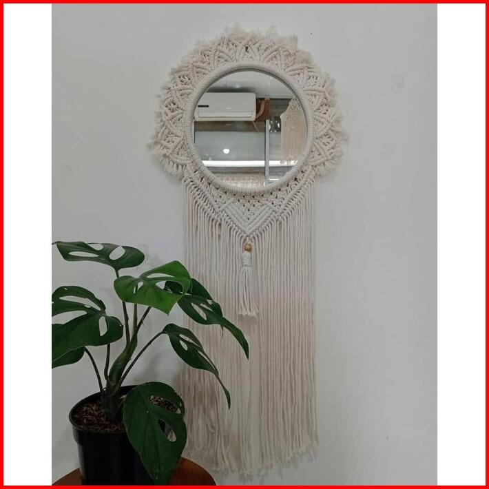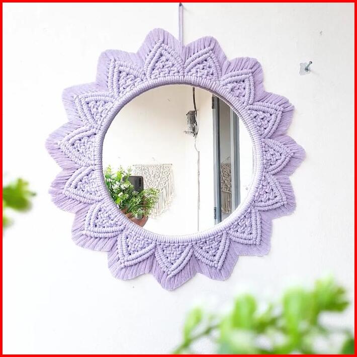 Hiasan Jam Dinding Ruang Tamu- Macrame Cermin -hiasan Gantung Cermin- Dinding Tempel Tembok -hiasan Dinding Cermin-hiasa