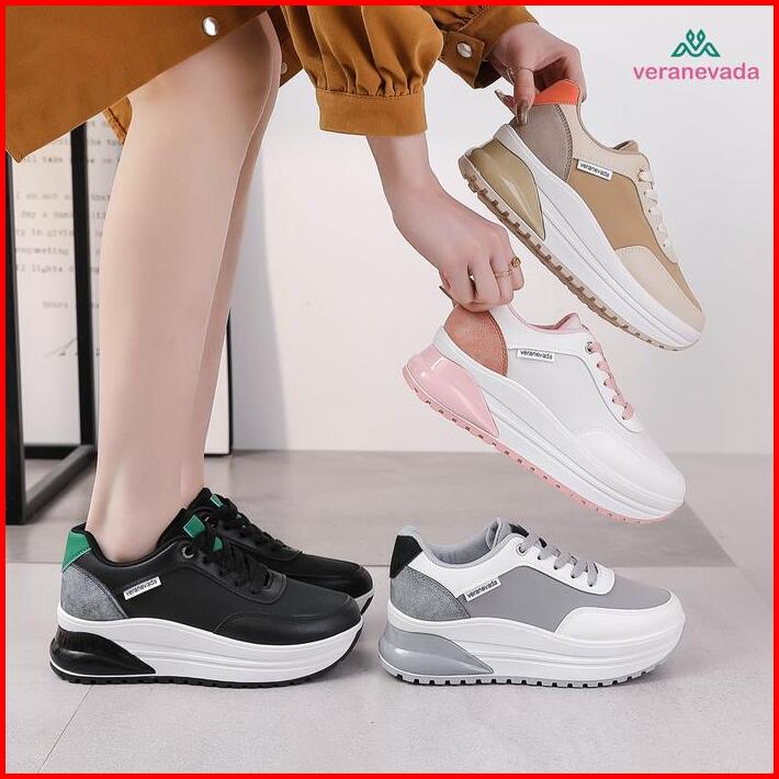 Vn Sepatu Cia Sneakers Casual Wanita Sport Black Pink Shoes V008