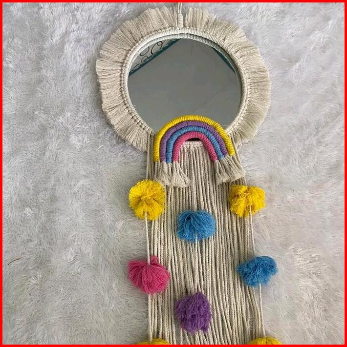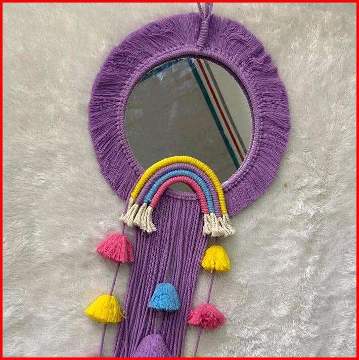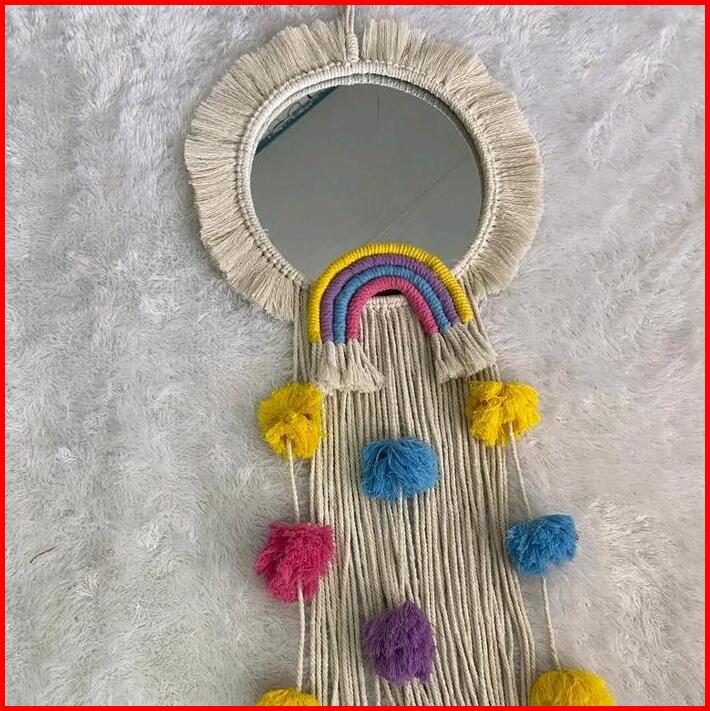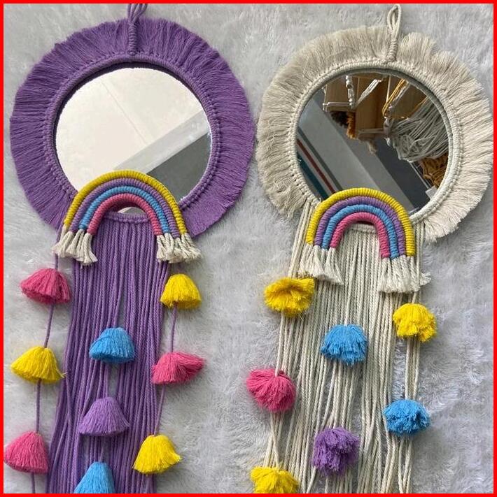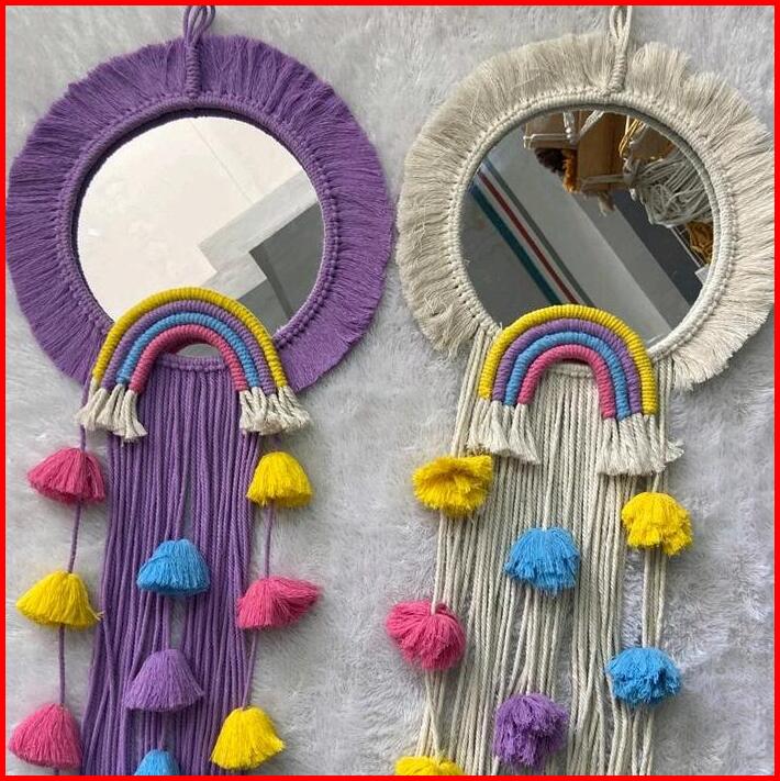 Cermin Macrame Rainbow-hiasan Dinding Cermin Gantung Rainbow
