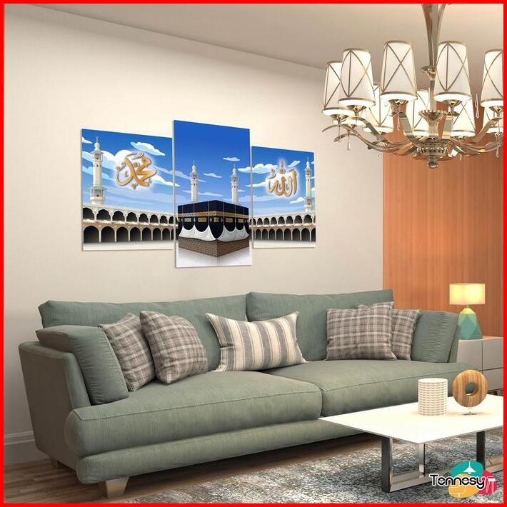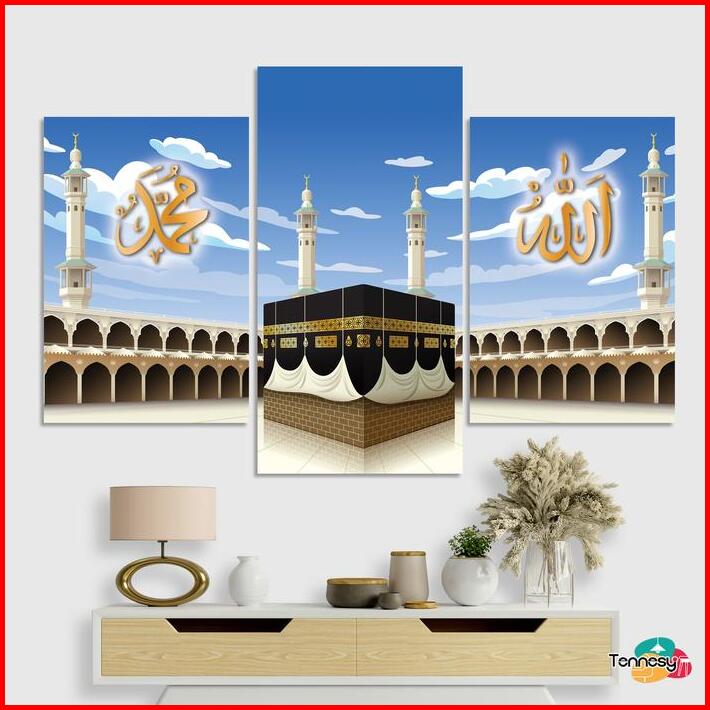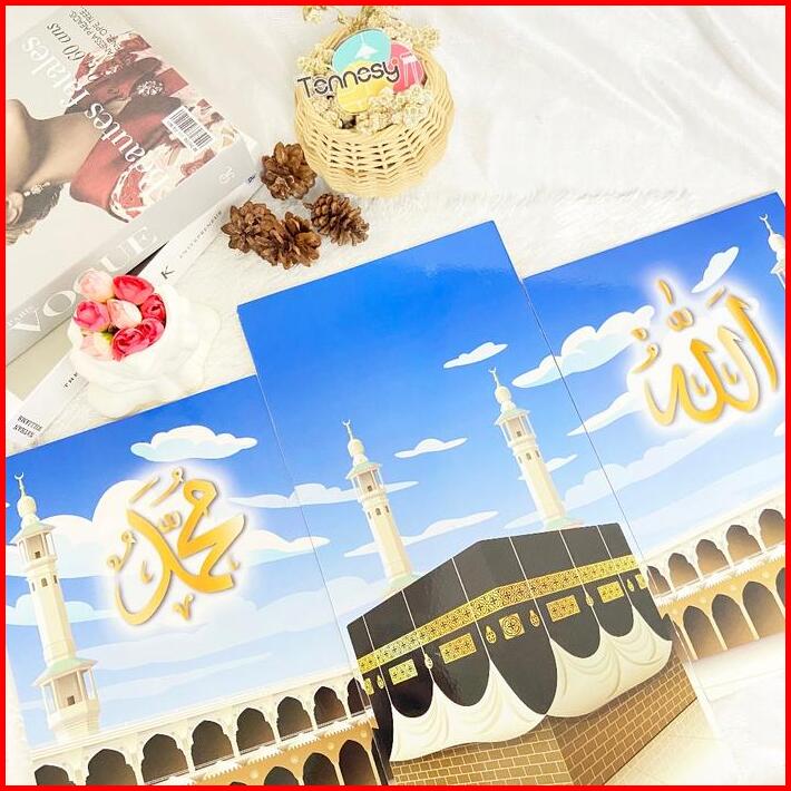 Tennesy Hiasan Dinding Kaligrafi 1 Set Kabah Islamic Makah 60x40cm 3 Panel Pajangan Rumah Aesthetic Poster Islami Esteti