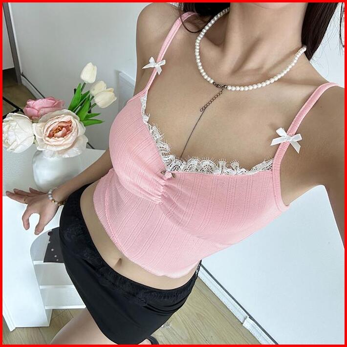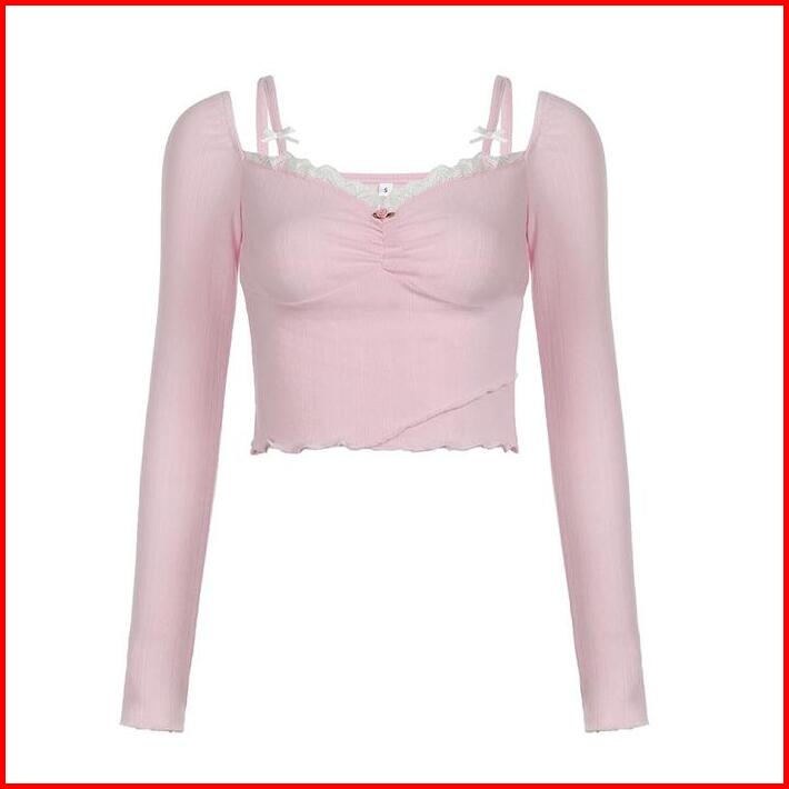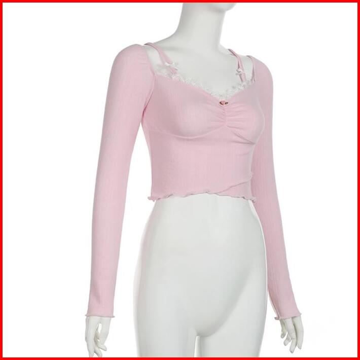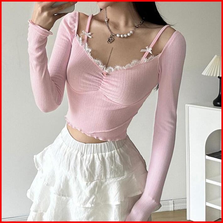 Heysoul Coquette Girl Top Atasan Crop Baju Wanita Pink Cewek Croptop Lengan Panjang Pendek Korean Kerah Kain