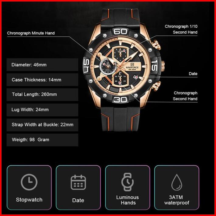Jam Tangan Pria Navi Force Original Anti Air Chronograph Nf 8018t Rgbo