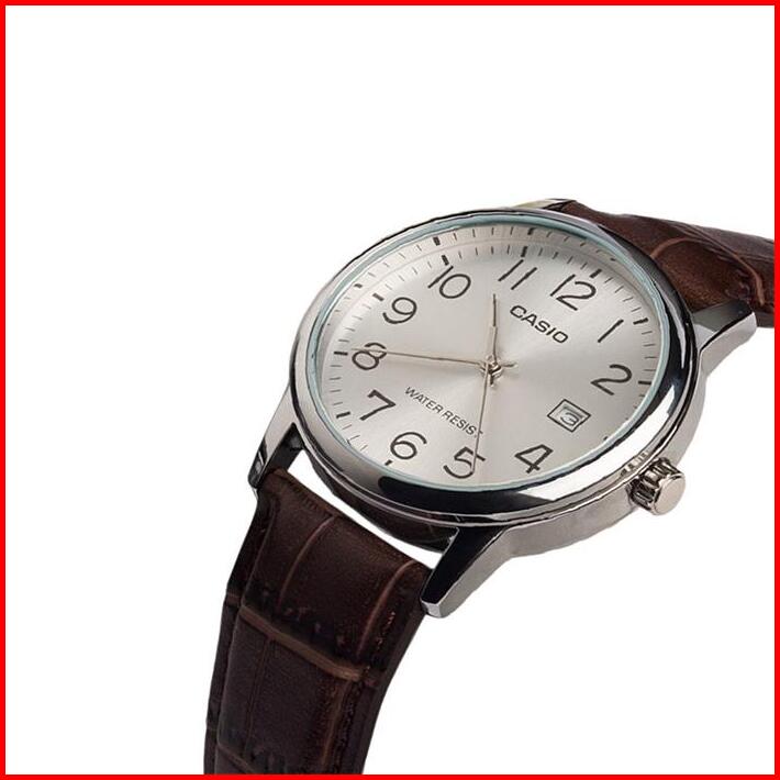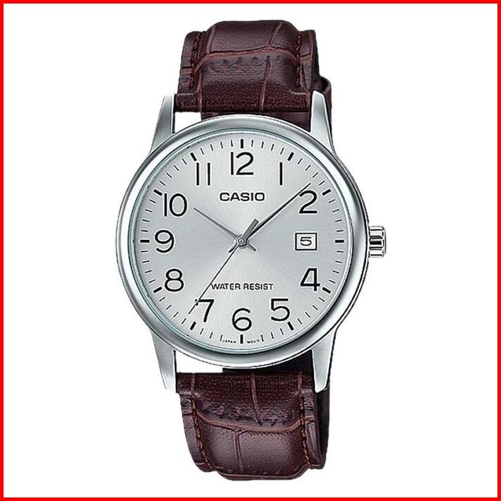 Jam Tangan Pria Casio General Mtp-v002l-7b2udf Men Analog Silver Dial Brown Leather Band