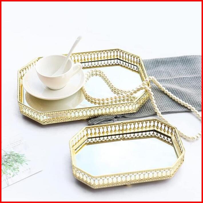 Codnampan Aesthetic Nampan Estetik Mewah Tray Aesthetic Nordic Cahaya Gaya Mewah Besi Tempa Kaca Cermin Dasar Tray Ruang
