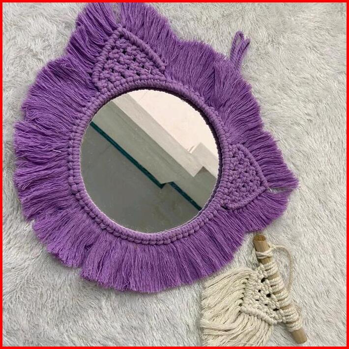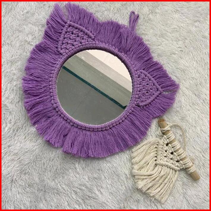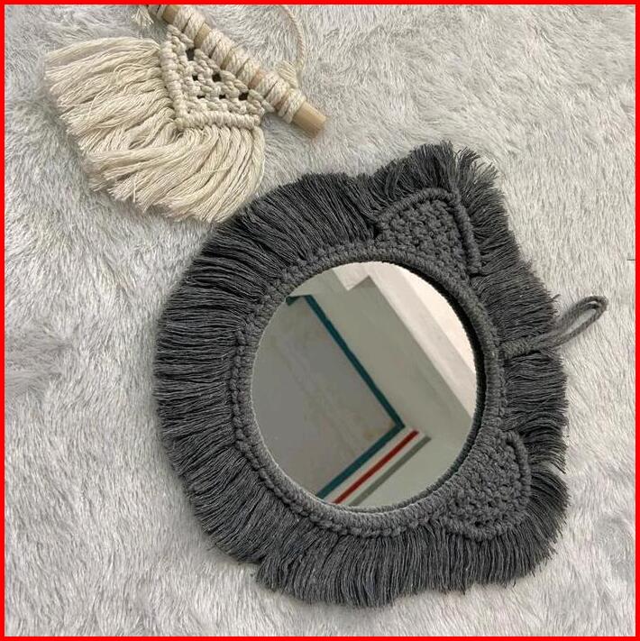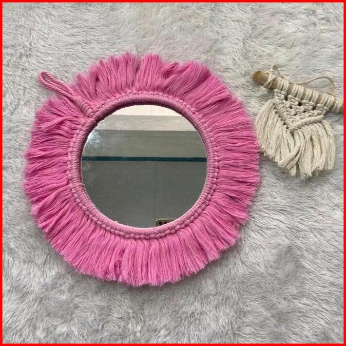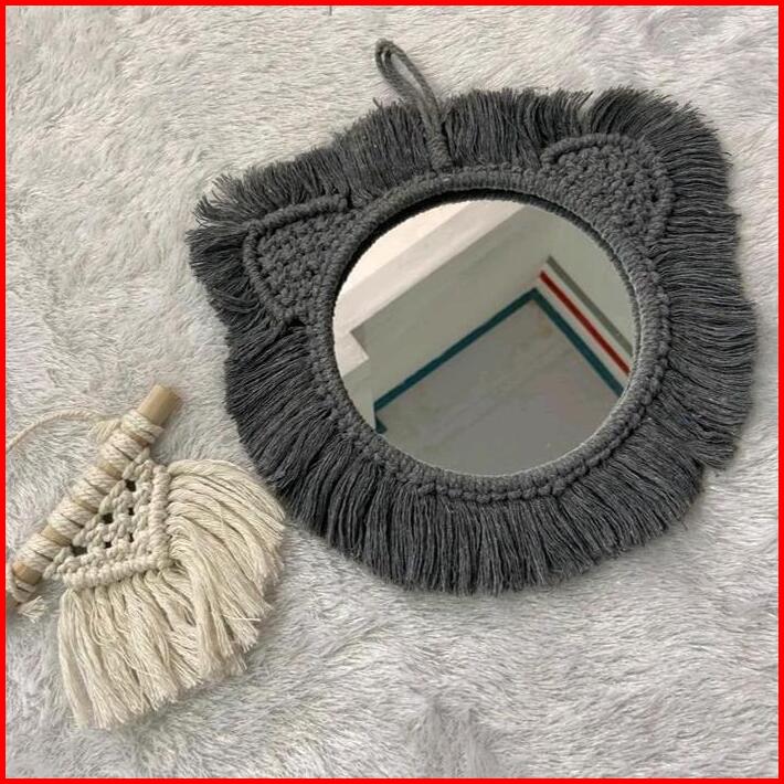 Cermin Makrame Minimalis Catty-cermin Gantung-cermin Tempel Dinding-hiasan Dinding -hiasan Gantung -macrame Dinding