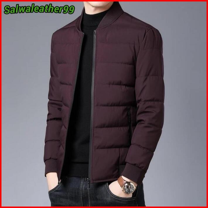 Salwaleather99 Jaket Winter Bomber Pria Hitam Nyaman Semi Panjang Bahan Dakron Super Model Menarik Dengan Saku Dalam Siz