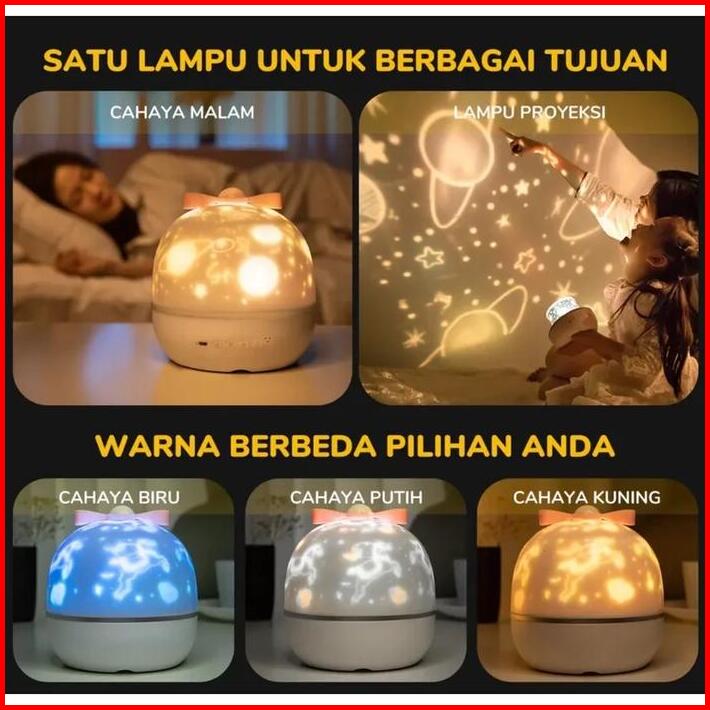 Ready Codlampu Tidur Proyektor Langit Malam Berbintang Kamar Aesthetic Tidur Lucu Bluetooth Speaker Rotasi Rechargeable