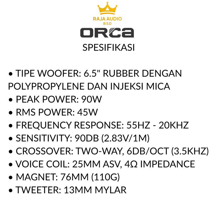 ORCA RC-652 SPL Speaker Pintu Split 2 Way 6.5” – Suara Jernih & Detail, Tweeter Mylar 13mm