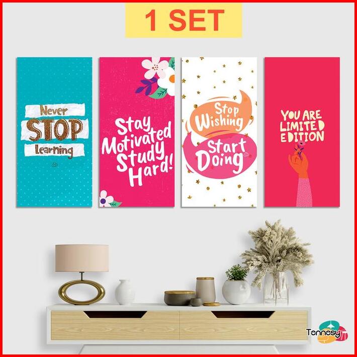 Tennesy Hiasan Dinding 1 Set Quote Motivasi 15x30cm Isi 4 Bingkai Foto Wall Decor Pajangan Kamar Tidur Dekorasi Rumah Ga