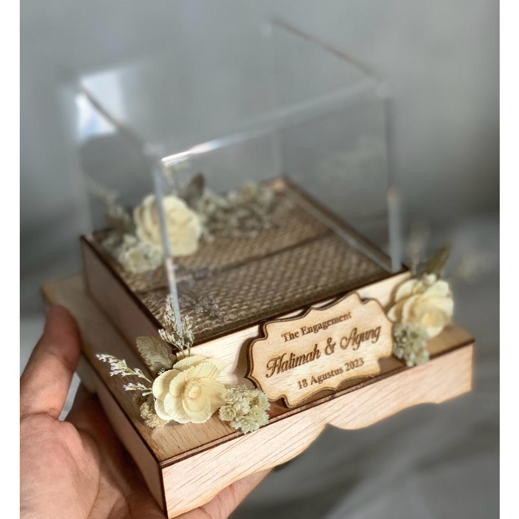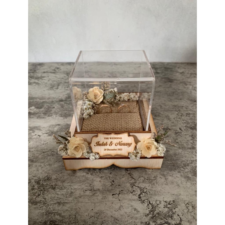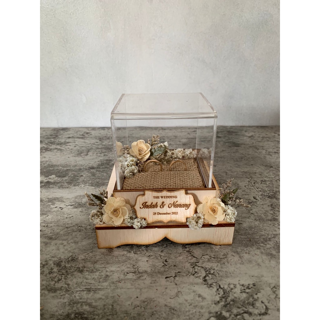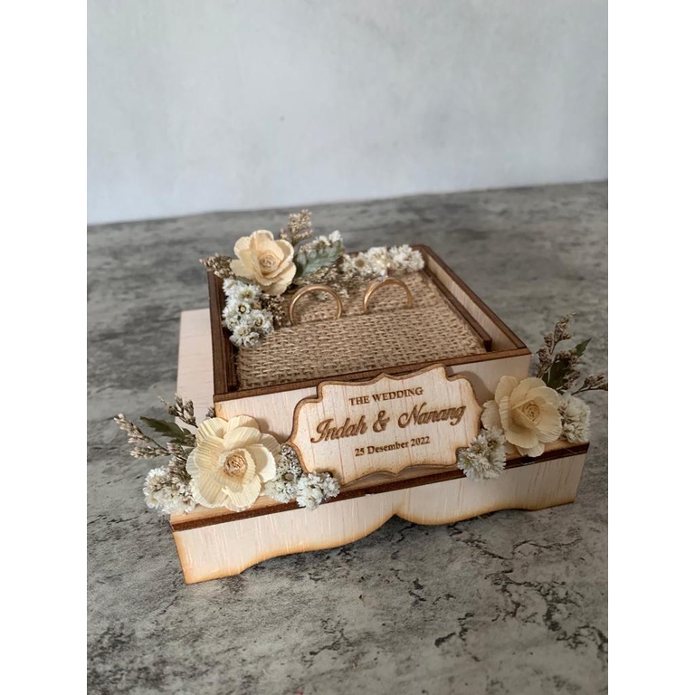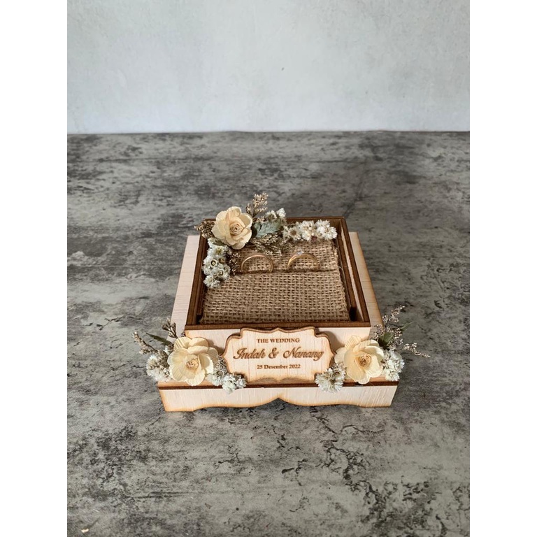 Kotak cincin pernikahan / kotak perhiasan rustic + nama