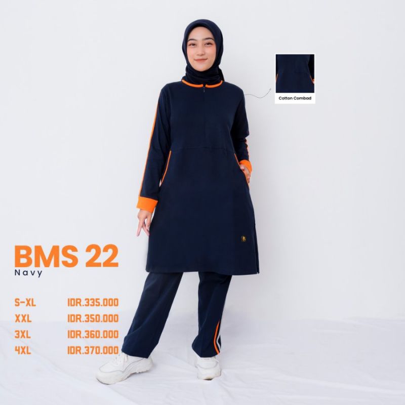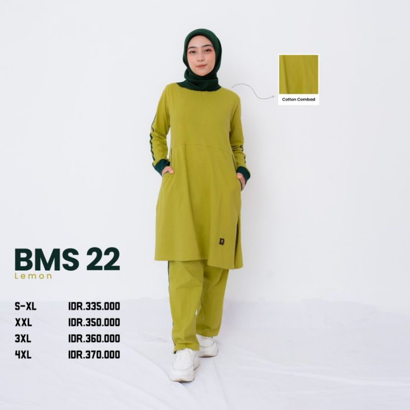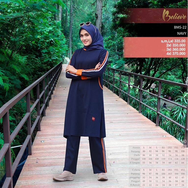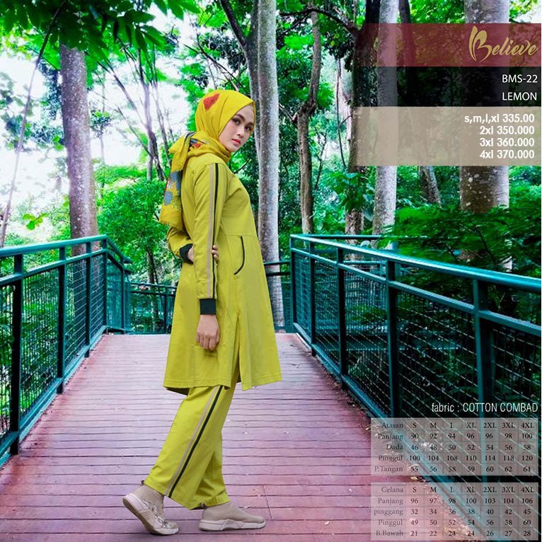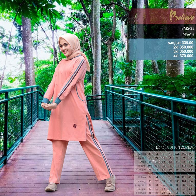 BMS 22 Believe Setelan Katun Combed Olahraha Wanita Muslimah Sport Senam Zumba Jogging Seragam Olahraga