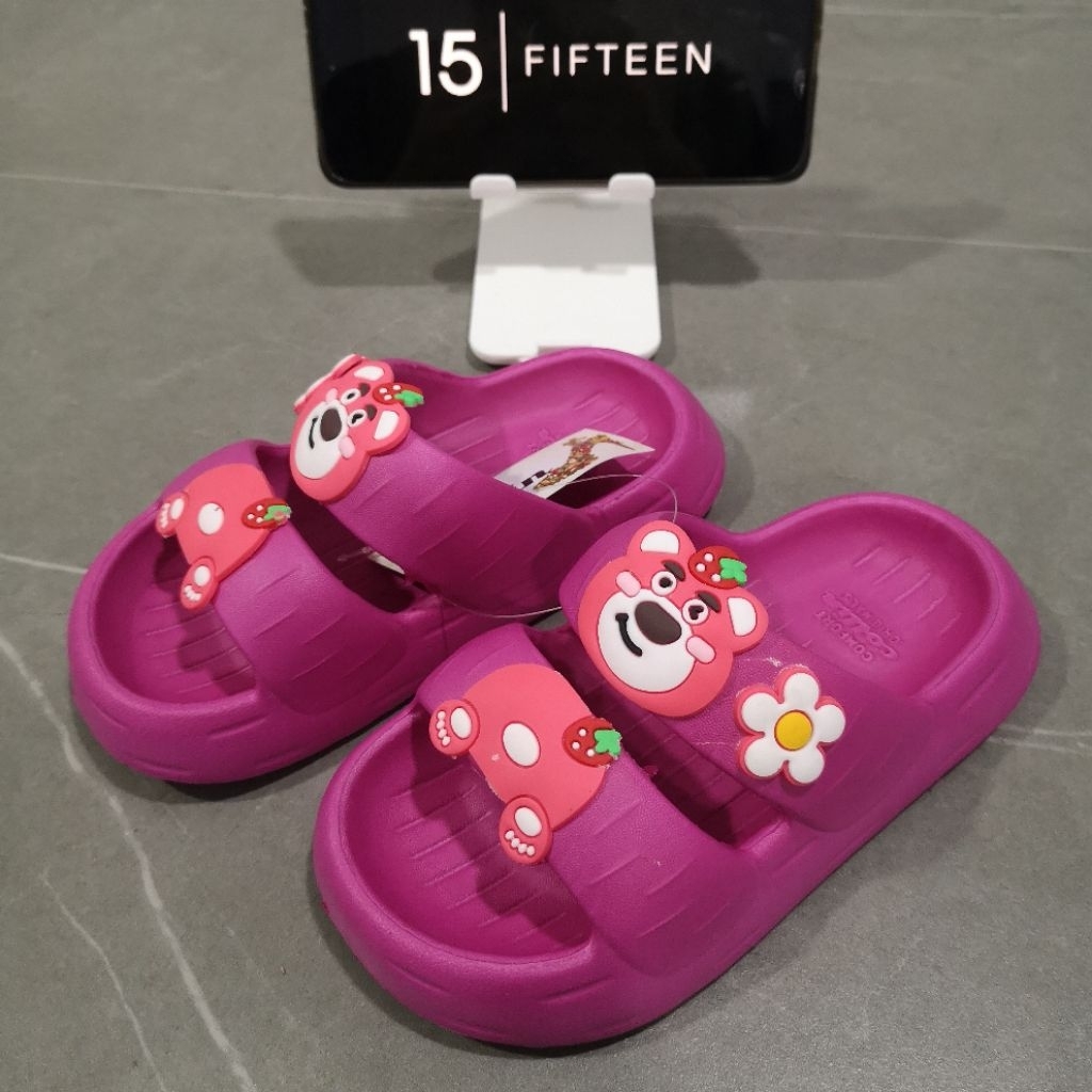 Sandal Anak Perempuan Bear Bunga Sendal Cewek Kekinian Lucu Ringan Nyaman Karet Pink Hitam 6137-T1