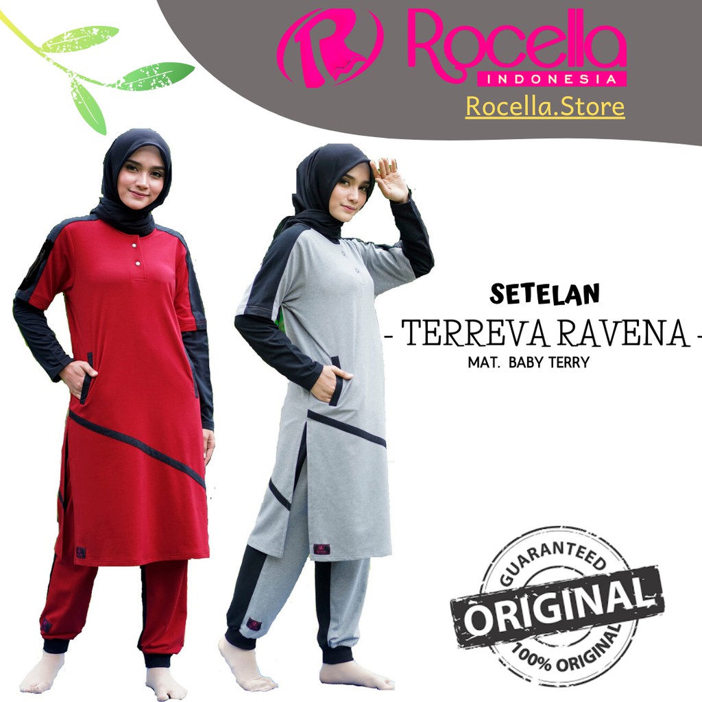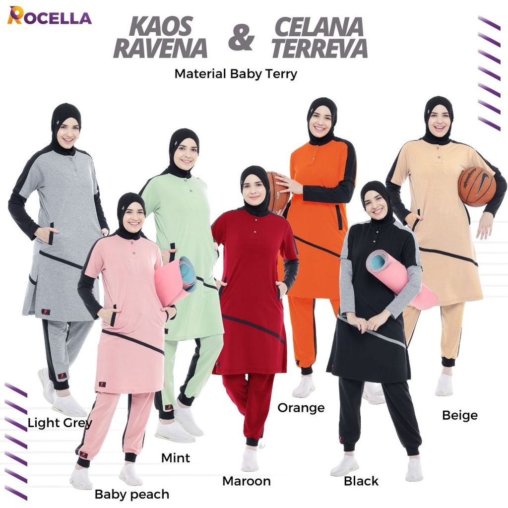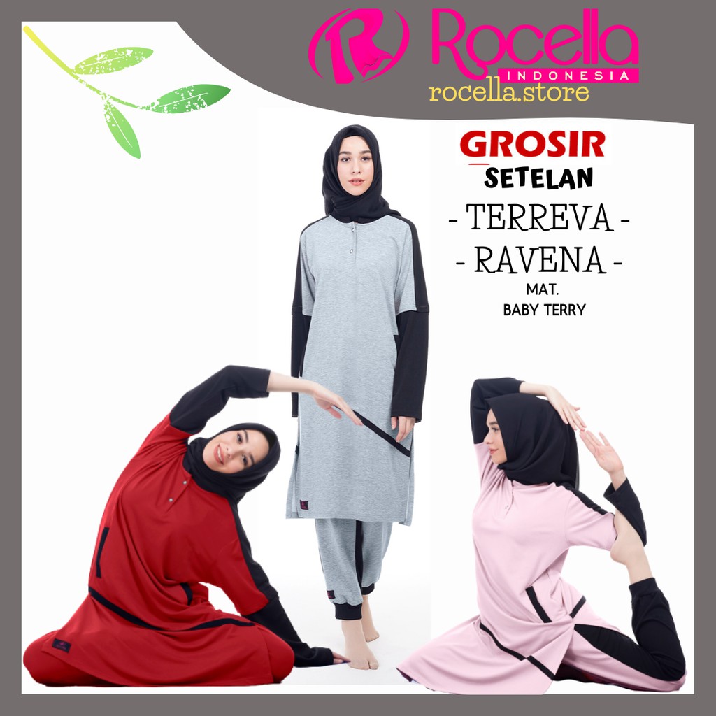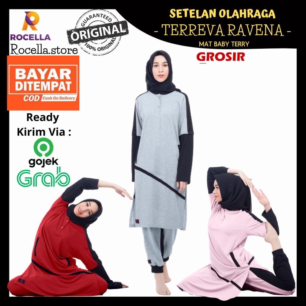 Kaos Olahraga Wanita Setelan Olahraga Muslimah Bahan Baby Terry Trening & Kaos Panjang Menutup Aurat