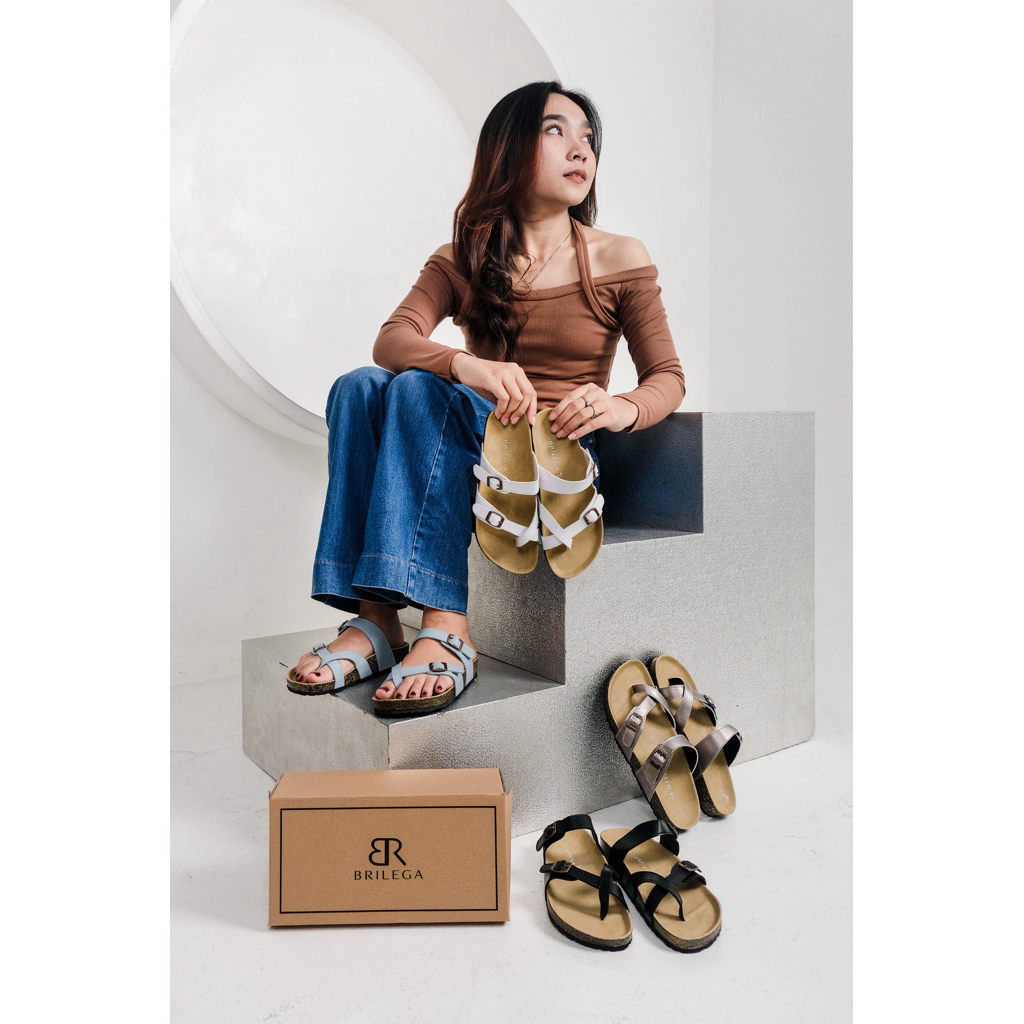 BRILEGA DIORRY Sandal Casual Wanita Best Seller Dengan Ketinggian Sole 3cm Sandal Puyuh Silang Sandal Super Nyaman Dengan Design Terbaru Sandal Footbed Wanita