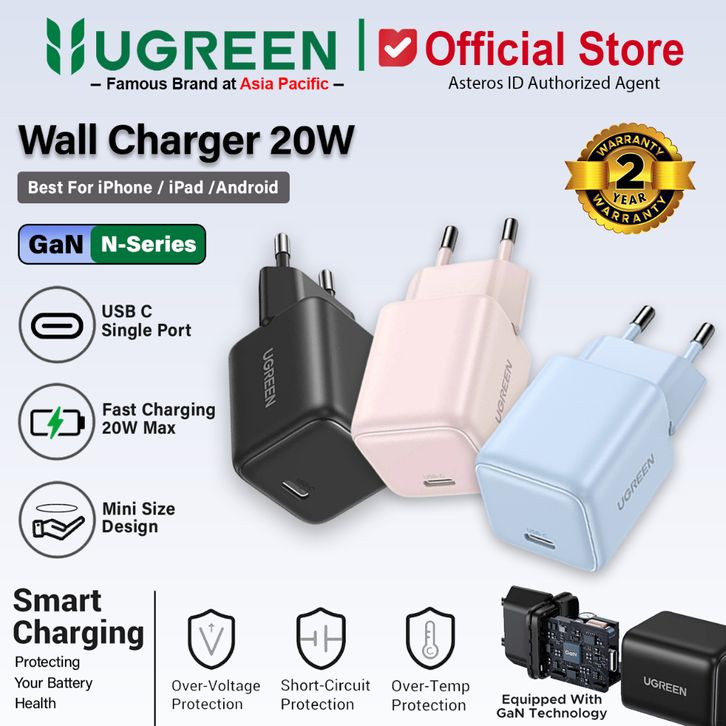 UGREEN Kepala Adaptor Charger 20W GaN N PD Fast Charging Type C For iPhone iPad Samsung Android