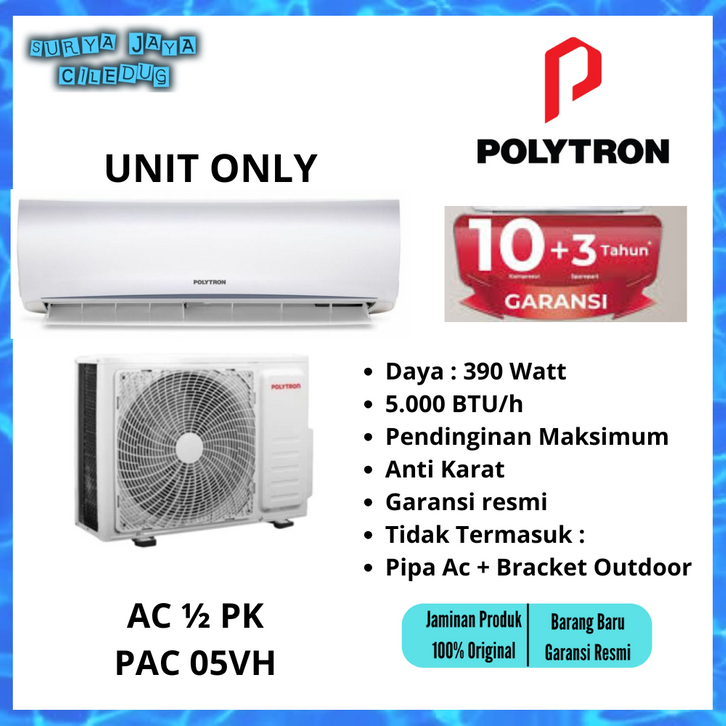 AC POLYTRON 1/2 PK PAC 05VH + PASANG SAMPE DINGIN- JABODETABEK