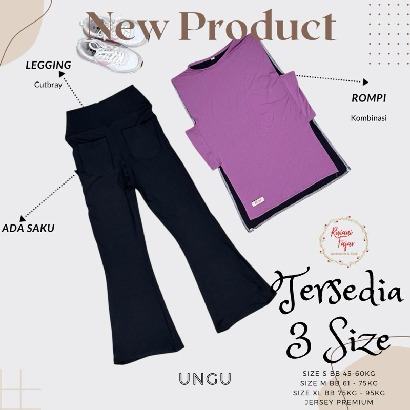 One Set Baju Olahraga 2 Warna Kombinasi Jersey Celana Cutbray Wanita Muslim Sporty