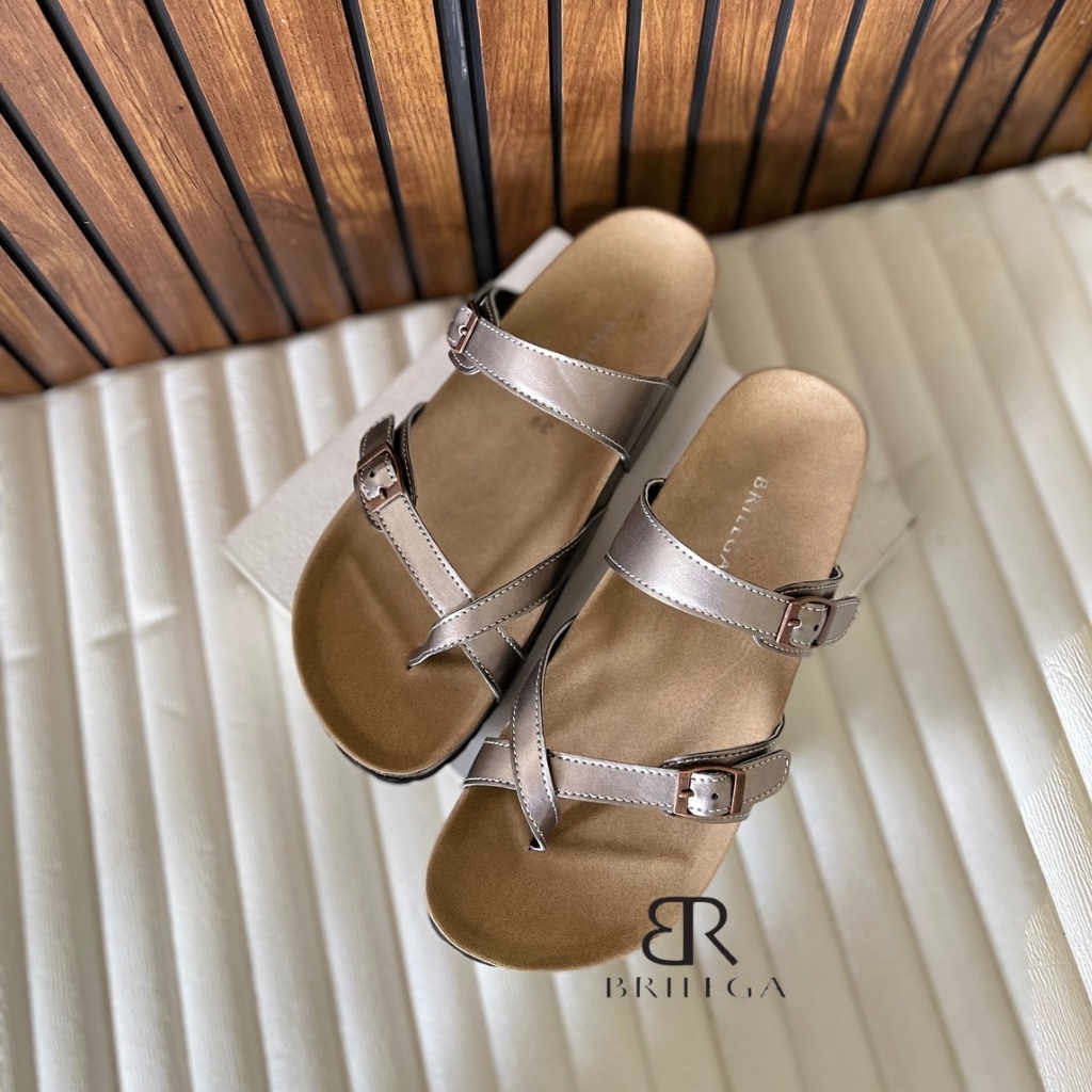 BRILEGA DIORRY BRONZE METALIC Sandal Casual Wanita Dengan Ketinggian Sole 3cm Sandal Puyuh Silang Tersedia Dari ( Ukuran 37 - 40 ) Sendal Puyuh Kokop Wanita