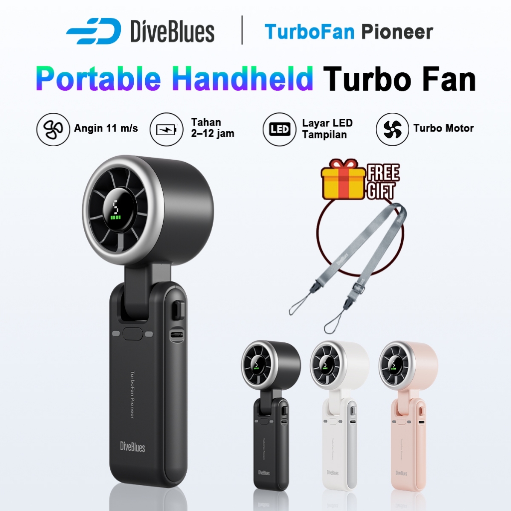 Diveblues Kipas Ac mini portable 29900RPM High-speed 4000Mah 5 Gear Wind dapat dilipat Digital Display Adjustable Led